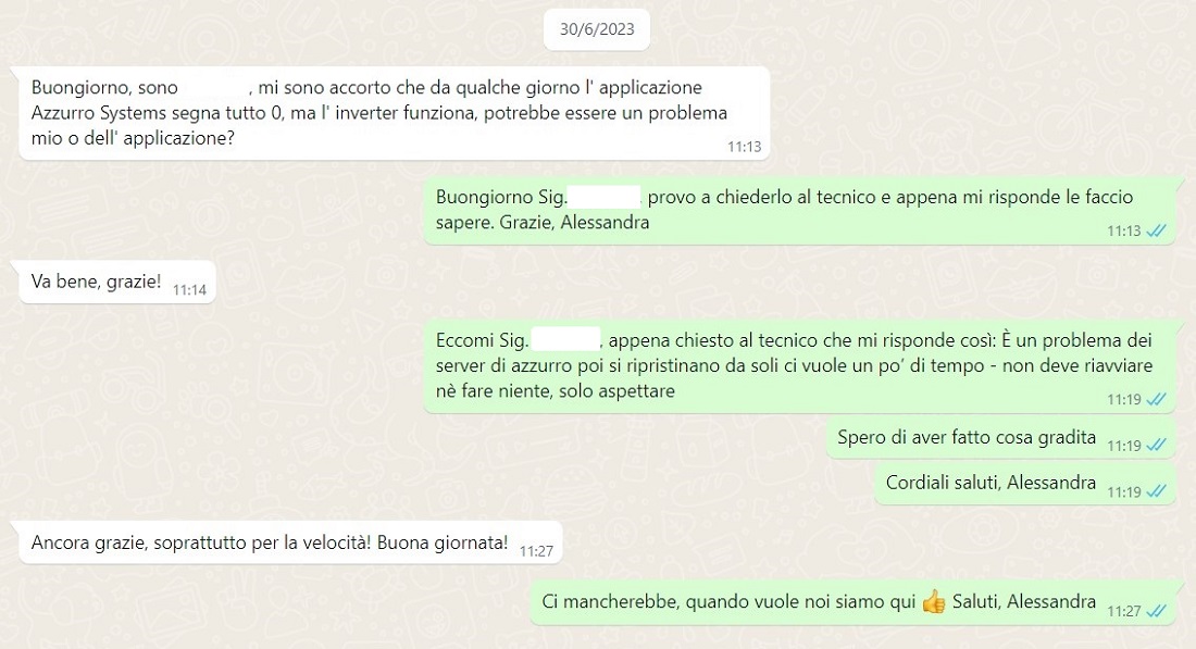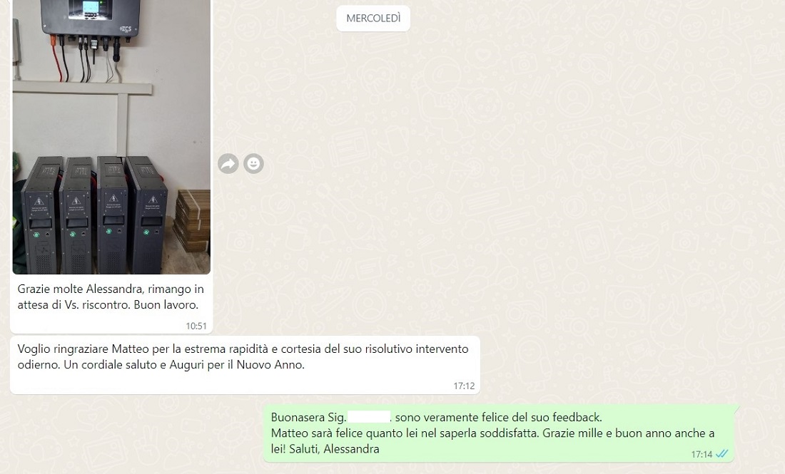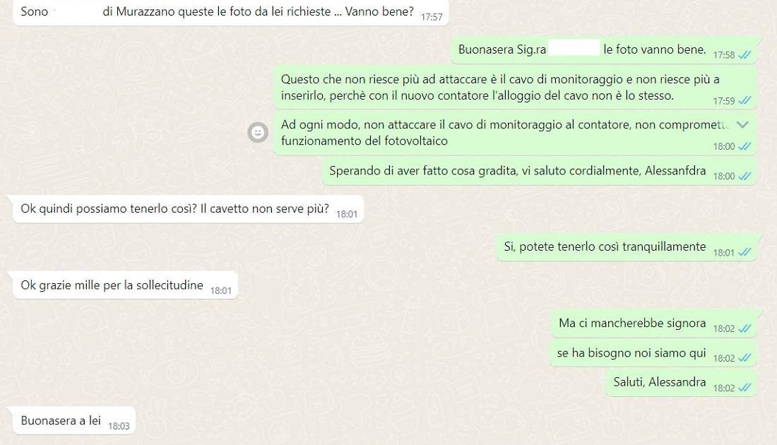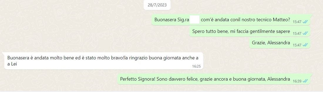 Buongiorno, volevo ringraziarvi perché il vostro elettrecista è venuto e ha fatto tutto. Siamo a posto e vi ringrazio ancora. Mi rendo disponibile anche a poter collaborare con voi. Comunque vi ringrazio ancora! Buona giornata e buone vacanze