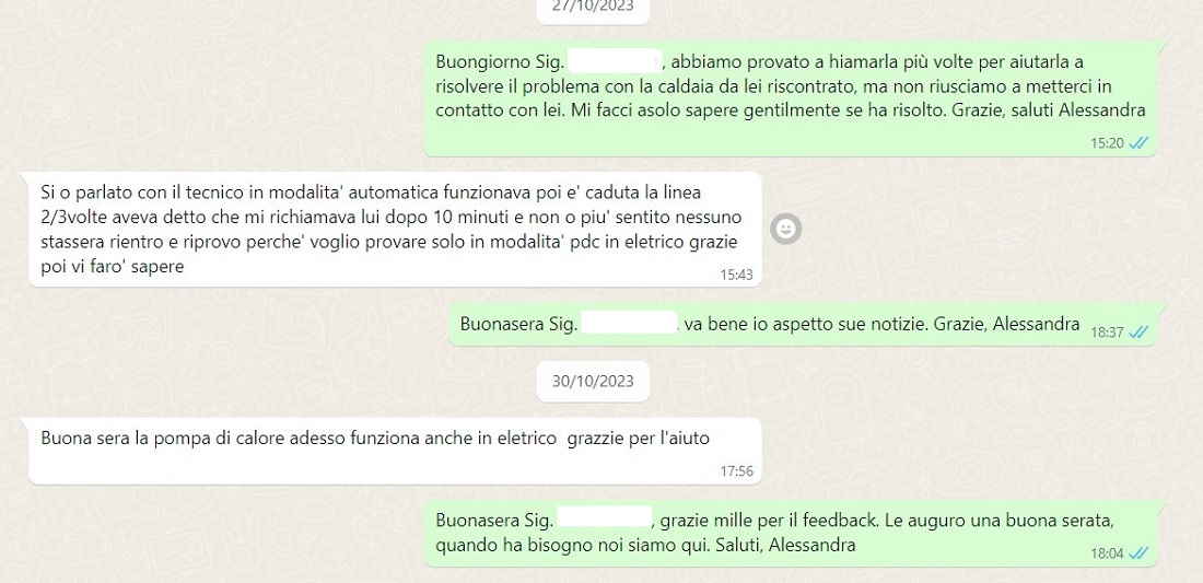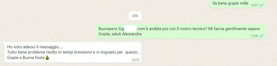 Volevo ringraziarvi, ho sentito i miei genitori e mi hanno detto che i tecnici sono stati efficaci e tempestivi. Vi ringrazio tanto veramente, vi posso solo ringraziare! Del resto che dire, vi faccio tanti auguri!